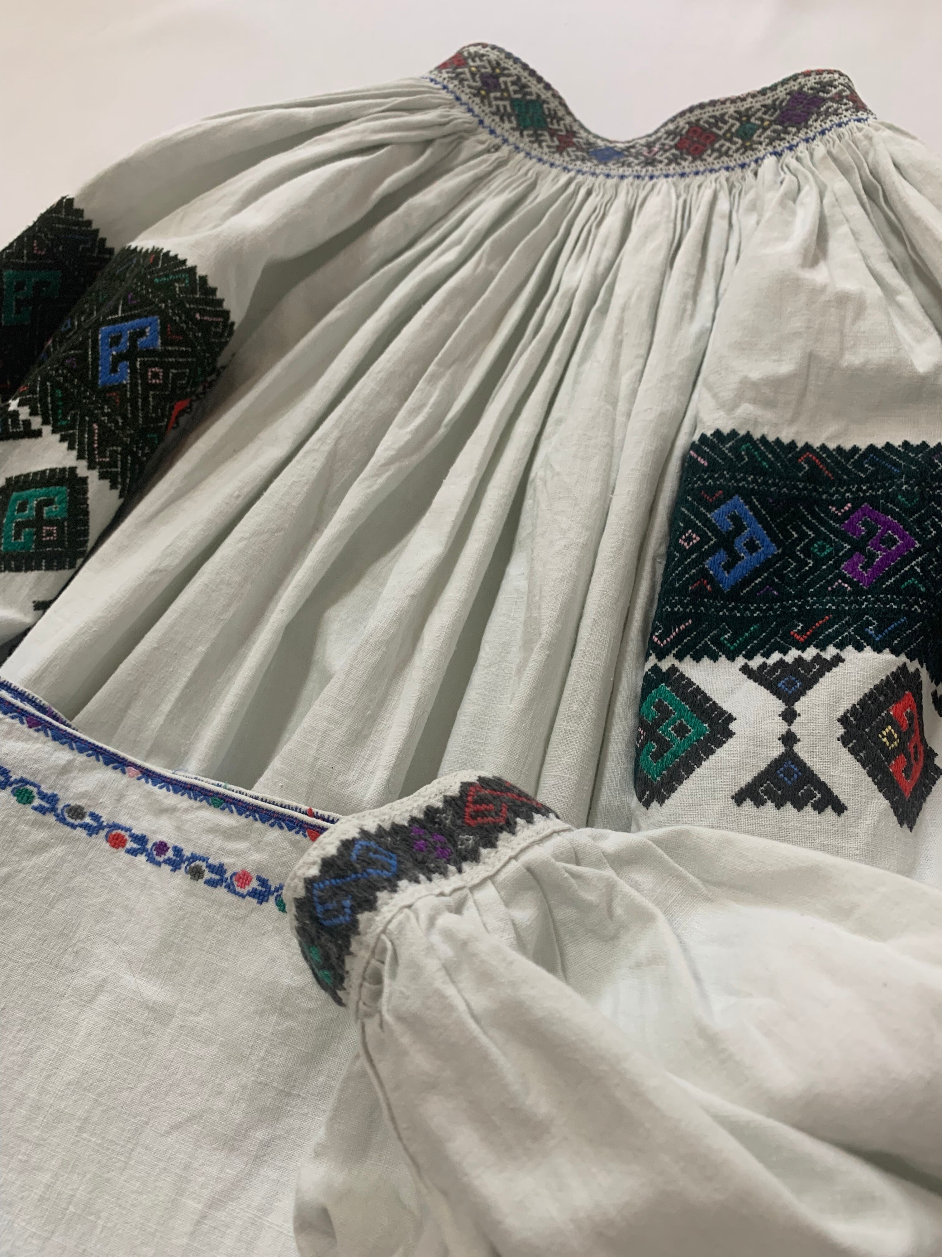 カラフルな幾何学模様の刺繍がとても素敵なワンピースです。