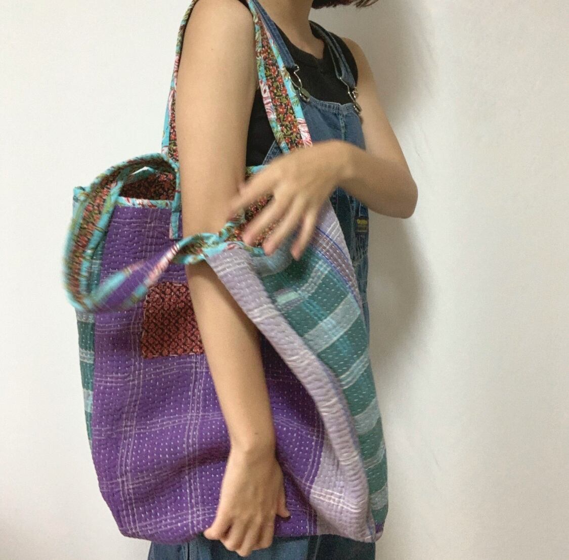 ヴィンテージのカンタキルトを使ったトートバッグです。